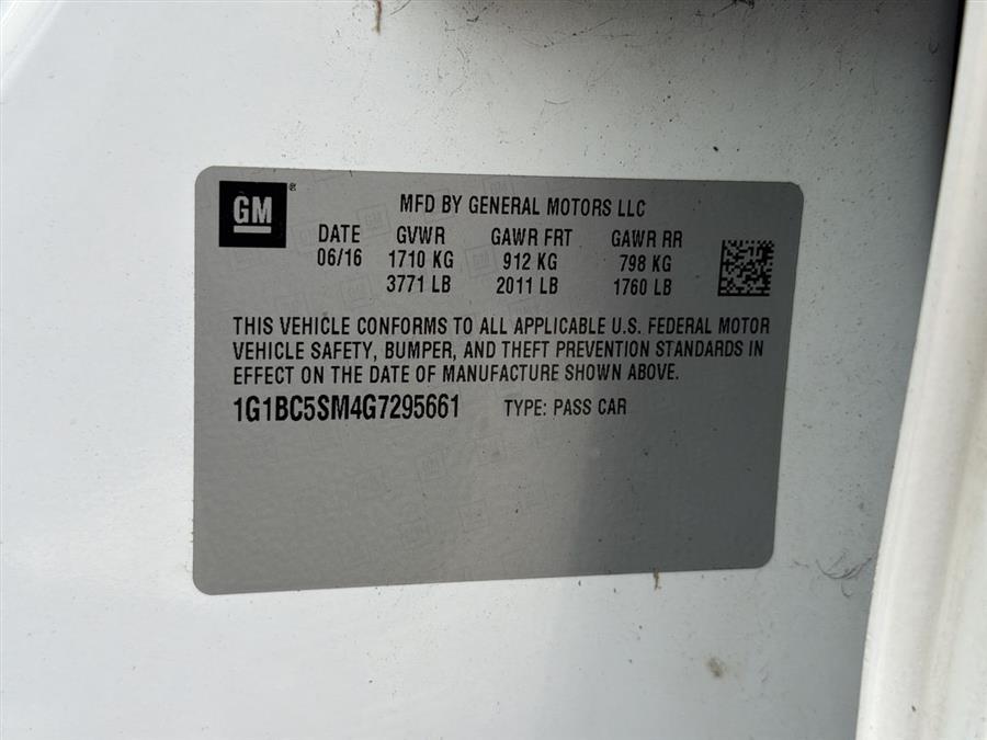 Summit White 2016 Chevrolet Cruze LS 1.4L 4-Cylinder Turbo DOHC CVVT FWD 4D Sedan 6-Speed Automatic