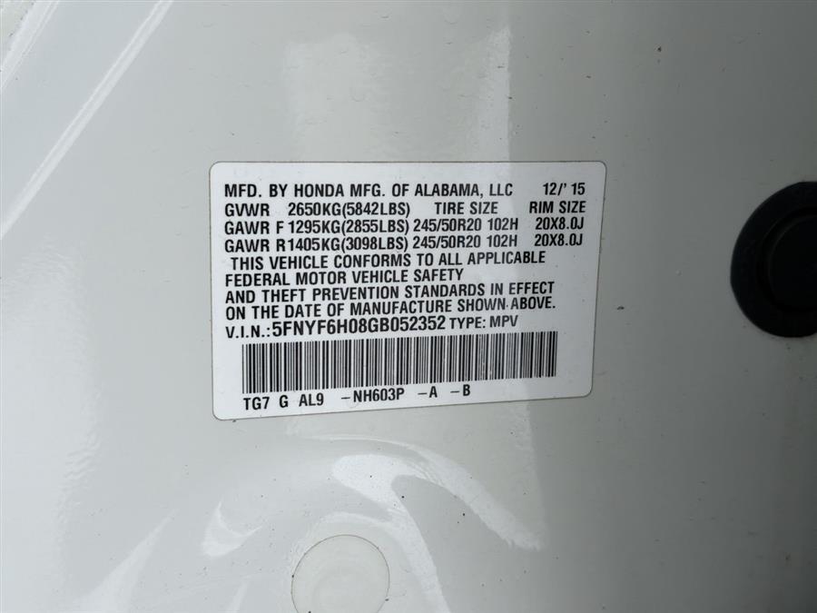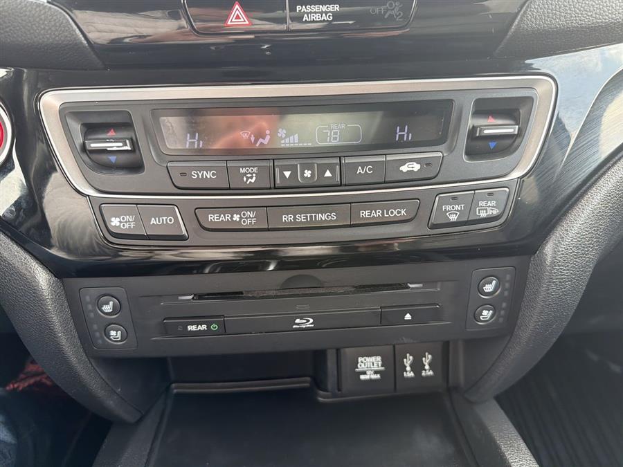 AWD, 10 Speakers, 20" Alloy Wheels, 3rd row seats: split-bench, 4-Wheel Disc Brakes, 4.334 Axle Ratio, A/V remote, ABS brakes, Air Conditioning, Alloy wheels, AM/FM radio: SiriusXM, Auto High-beam Headlights, Auto-dimming Rear-View mirror, Automatic temperature control, Brake assist, Bumpers: body-color, Compass, Delay-off headlights, Driver door bin, Driver vanity mirror, Dual front impact airbags, Dual front side impact airbags, Electronic Stability Control, Emergency communication system: HondaLink Assist, Exterior Parking Camera Rear, Four wheel independent suspension, Front anti-roll bar, Front Bucket Seats, Front Center Armrest, Front dual zone A/C, Front fog lights, Front reading lights, Fully automatic headlights, Garage door transmitter: HomeLink, Headphones, Heated & Ventilated Front Bucket Seats, Heated door mirrors, Heated front seats, Heated rear seats, Heated steering wheel, Honda Satellite-Linked Navigation System, Illuminated entry, Leather Shift Knob, Low tire pressure warning, Memory seat, Navigation System, Occupant sensing airbag, Outside temperature display, Overhead airbag, Overhead console, Panic alarm, Passenger door bin, Passenger vanity mirror, Perforated Leather-Trimmed Seats, Power door mirrors, Power driver seat, Power Liftgate, Power moonroof, Power passenger seat, Power steering, Power windows, Radio data system, Radio: AM/FM/HD Premium Audio System, Rain sensing wipers, Rear air conditioning, Rear anti-roll bar, Rear audio controls, Rear reading lights, Rear window defroster, Rear window wiper, Remote keyless entry, Roof rack: rails only, Security system, SiriusXM Radio, Speed control, Speed-sensing steering, Speed-Sensitive Wipers, Split folding rear seat, Spoiler, Steering wheel mounted audio controls, Tachometer, Telescoping steering wheel, Tilt steering wheel, Traction control, Trip computer, Turn signal indicator mirrors, Variably intermittent wipers, Ventilated front seats, AWD.