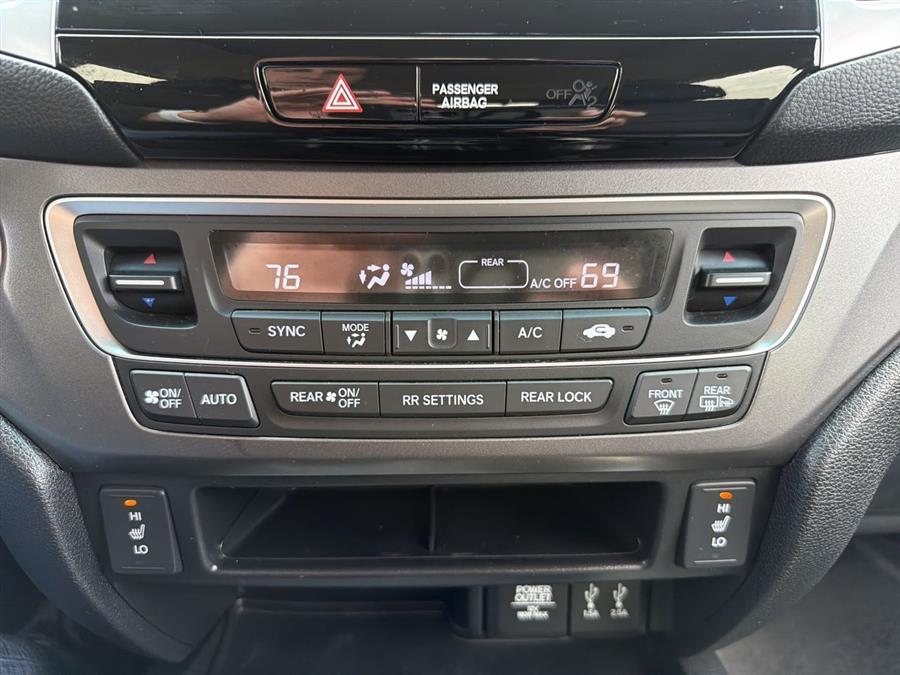 AWD, 18" Alloy Wheels, 3rd row seats: split-bench, 4-Wheel Disc Brakes, 4.25 Axle Ratio, 7 Speakers, ABS brakes, Air Conditioning, Alloy wheels, AM/FM radio: SiriusXM, Auto-dimming Rear-View mirror, Automatic temperature control, Brake assist, Bumpers: body-color, Compass, Delay-off headlights, Driver door bin, Driver vanity mirror, Dual front impact airbags, Dual front side impact airbags, Electronic Stability Control, Emergency communication system: HondaLink Assist, Exterior Parking Camera Rear, Four wheel independent suspension, Front anti-roll bar, Front Bucket Seats, Front Center Armrest, Front dual zone A/C, Front fog lights, Front reading lights, Fully automatic headlights, Garage door transmitter: HomeLink, Heated door mirrors, Heated Front Bucket Seats, Heated front seats, Illuminated entry, Leather Shift Knob, Leather-Trimmed Seats, Low tire pressure warning, Occupant sensing airbag, Outside temperature display, Overhead airbag, Overhead console, Panic alarm, Passenger door bin, Passenger vanity mirror, Power door mirrors, Power driver seat, Power Liftgate, Power moonroof, Power passenger seat, Power steering, Power windows, Radio data system, Radio: AM/FM Audio System, Rear air conditioning, Rear anti-roll bar, Rear reading lights, Rear seat center armrest, Rear window defroster, Rear window wiper, Remote keyless entry, Security system, SiriusXM Radio, Speed control, Speed-sensing steering, Speed-Sensitive Wipers, Split folding rear seat, Spoiler, Steering wheel mounted audio controls, Tachometer, Telescoping steering wheel, Tilt steering wheel, Traction control, Trip computer, Variably intermittent wipers, AWD.