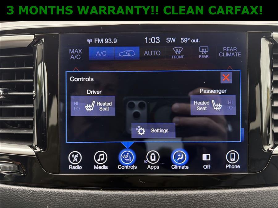 OIL CHANGE, 17" x 7.0" Aluminum Wheels, 2nd & 3rd Row Window Shades (DISC), 3.25 Axle Ratio, 3rd row seats: split-bench, 4-Wheel Disc Brakes, 6 Mo. Trial (Registration Required), 6 Speakers, 8.4" Touchscreen Display, ABS brakes, Air Conditioning, Alloy wheels, AM/FM radio: SiriusXM, Automatic temperature control, Black Stow N Place Roof Rack, Blind Spot & Cross Path Detection, Brake assist, Bumpers: body-color, Compass, Delay-off headlights, Driver door bin, Driver vanity mirror, Driver's Seat Mounted Armrest, Dual front impact airbags, Dual front side impact airbags, Electronic Stability Control, For Details, Visit DriveUconnect.com, Four wheel independent suspension, Front anti-roll bar, Front Bucket Seats, Front dual zone A/C, Front fog lights, Front reading lights, Fully automatic headlights, Garage door transmitter, GPS Antenna Input, Heated door mirrors, Heated front seats, Illuminated entry, Integrated Voice Command w/Bluetooth, Knee airbag, Leather steering wheel, Leather Trimmed Bucket Seats, Low tire pressure warning, Manufacturer's Statement of Origin, Nav-Capable! See Dealer for Details, Normal Duty Suspension, Occupant sensing airbag, Outside temperature display, Overhead airbag, Overhead console, Panic alarm, ParkSense Rear Park Assist w/Stop, ParkView Rear Back-Up Camera, Passenger door bin, Passenger seat mounted armrest, Passenger vanity mirror, Power door mirrors, Power driver seat, Power Liftgate, Power steering, Power windows, Quick Order Package 25L (DISC), Radio data system, Radio: Uconnect 3 w/5" Display, Radio: Uconnect 3C w/8.4" Display, Rear air conditioning, Rear reading lights, Rear window defroster, Rear window wiper, Reclining 3rd row seat, Remote keyless entry, Roof rack, SafetyTec, SiriusXM Satellite Radio, Speed control, Split folding rear seat, Spoiler, Steering wheel mounted audio controls, Tachometer, Telescoping steering wheel, Tilt steering wheel, Traction control, Trip computer, Uconnect Access, Variably intermittent wipers, Voltmeter, 3 MONTHS WARRANTY!!, CLEAN CARFAX!!.