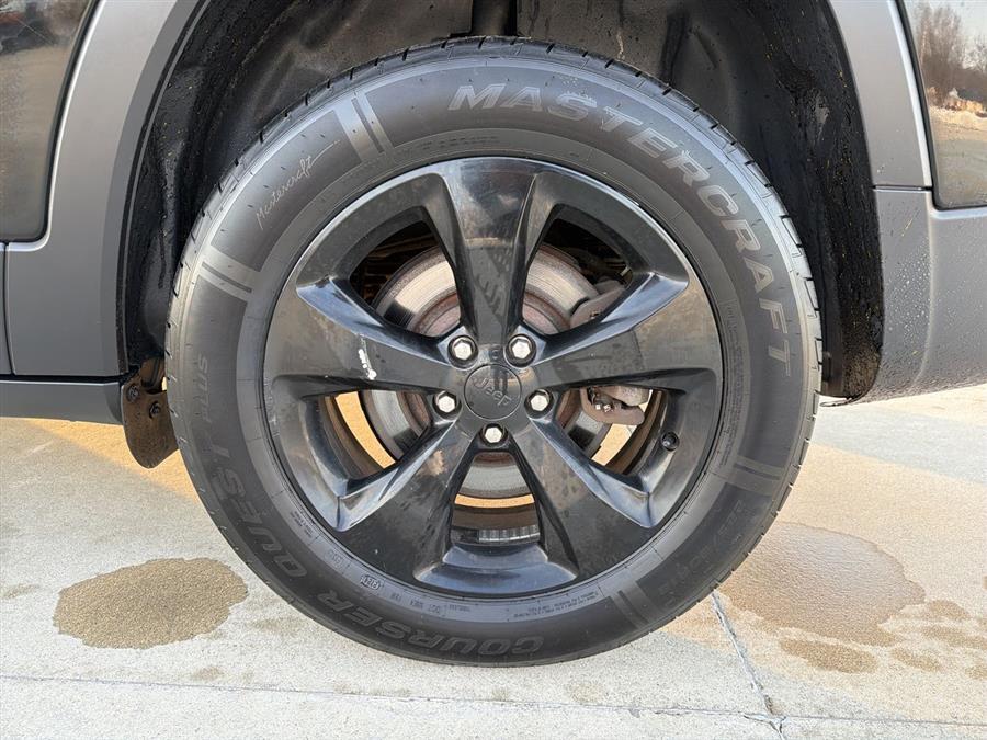Leather Seats, Sunroof/Moonroof, NEW BRAKES, 3.73 Axle Ratio, 4-Wheel Disc Brakes, 6 Speakers, 600 Amp Maintenance Free Battery, 8.4" Touchscreen Display, ABS brakes, Active Grille Shutters, Air Conditioning, Alloy wheels, AM/FM radio: SiriusXM, Anti-whiplash front head restraints, Auto-dimming Rear-View mirror, Automatic temperature control, Auxiliary Transmission Oil Cooler, Blind Spot & Cross Path Detection, Brake assist, Bumpers: body-color, Compass, Day Light Opening Moldings, Delay-off headlights, Driver door bin, Driver vanity mirror, Dual front impact airbags, Dual front side impact airbags, Electronic Stability Control, Emergency communication system: Uconnect Access, Engine Oil Cooler, Exterior Mirrors Courtesy Lamps, Exterior Mirrors w/Supplemental Signals, Four wheel independent suspension, Front anti-roll bar, Front Bucket Seats, Front Center Armrest, Front dual zone A/C, Front fog lights, Front reading lights, Fully automatic headlights, Garage door transmitter, Gloss Black Fascia Applique, Gloss Black Grille Surrounds, Gloss Black Roof Rails, Heated door mirrors, Heated front seats, Heated steering wheel, High intensity discharge headlights: Bi-Xenon, Illuminated entry, Integrated Voice Command w/Bluetooth, Jeep Black Gloss Badging, Knee airbag, Leather Shift Knob, Leather Trimmed Bucket Seats, Low tire pressure warning, Manufacturer's Statement of Origin, Normal Duty Suspension, Occupant sensing airbag, Outside temperature display, Overhead airbag, Overhead console, Panic alarm, ParkSense Rear Park Assist System, ParkView Rear Back-Up Camera, Passenger door bin, Passenger vanity mirror, Power door mirrors, Power driver seat, Power Front/Fixed Rear Full Sunroof, Power steering, Power windows, Quick Order Package 21P High Altitude (DISC), Radio data system, Radio: Uconnect 3C w/8.4" Display, Rear anti-roll bar, Rear reading lights, Rear seat center armrest, Rear side impact airbag, Rear window defroster, Rear window wiper, Remote keyless entry, Roof rack: rails only, SafetyTec, Security system, SIRIUSXM Satellite Radio, Speed control, Speed-sensing steering, Split folding rear seat, Spoiler, Steering wheel mounted audio controls, Tachometer, Telescoping steering wheel, Tilt steering wheel, Traction control, Trip computer, Turn signal indicator mirrors, Uconnect Access, Variably intermittent wipers, Voltmeter, Wheels: 18" x 7" Gloss Black 5-Spoke Aluminum (DISC), Wheels: 18" x 7" Painted Aluminum.