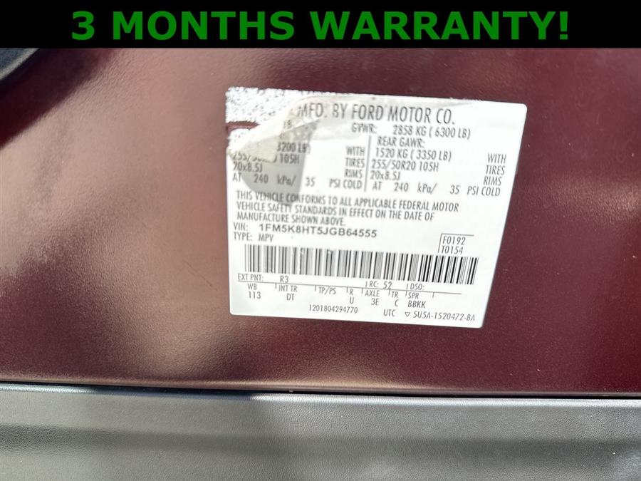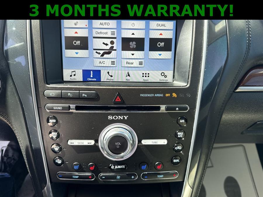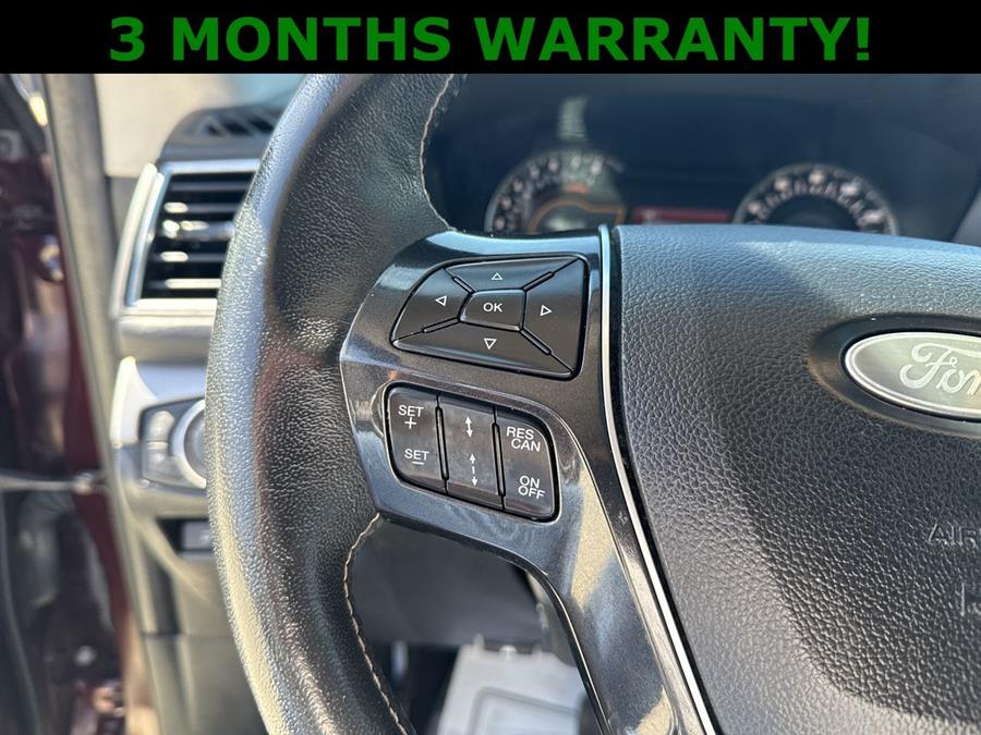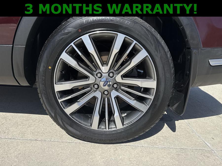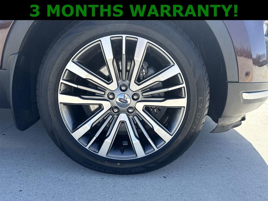 Leather Seats, Sunroof/Moonroof, Apple Carplay/Android Auto, 4WD, 12 Speakers, 3.16 Axle Ratio, 3rd row seats: split-bench, 4-Wheel Disc Brakes, ABS brakes, Active Cruise Control, Adjustable pedals, Air Conditioning, Alloy wheels, AM/FM radio: SiriusXM, AppLink/Apple CarPlay and Android Auto, Auto High-beam Headlights, Auto tilt-away steering wheel, Auto-dimming door mirrors, Auto-dimming Rear-View mirror, Automatic temperature control, Brake assist, Bumpers: body-color, CD player, Compass, Delay-off headlights, Driver door bin, Driver vanity mirror, Dual front impact airbags, Dual front side impact airbags, Electronic Stability Control, Emergency communication system: SYNC 3 911 Assist, Equipment Group 600A, Exterior Parking Camera Rear, Four wheel independent suspension, Front anti-roll bar, Front Bucket Seats, Front Center Armrest, Front dual zone A/C, Front fog lights, Front reading lights, Fully automatic headlights, Garage door transmitter, Genuine wood dashboard insert, Genuine wood door panel insert, Heated door mirrors, Heated front seats, Heated rear seats, Heated steering wheel, Illuminated entry, Knee airbag, Lane Departure Warning System, Leather steering wheel, Low tire pressure warning, Memory seat, Navigation System, Nirvana Multi Contour Leather Cooled Bucket Seats, Occupant sensing airbag, Outside temperature display, Overhead airbag, Overhead console, Panic alarm, Passenger door bin, Passenger vanity mirror, Pedal memory, Power door mirrors, Power driver seat, Power Liftgate, Power moonroof, Power passenger seat, Power steering, Power windows, Premium audio system: Sony, Radio data system, Radio: Premium Sound from Sony, Rain sensing wipers, Rear air conditioning, Rear anti-roll bar, Rear reading lights, Rear seat center armrest, Rear window defroster, Rear window wiper, Remote keyless entry, Roof rack: rails only, Security system, Speed control, Speed-sensing steering, Speed-Sensitive Wipers, Split folding rear seat, Spoiler, Steering wheel memory, Steering wheel mounted audio controls, SYNC 3 Communications & Entertainment System, Tachometer, Telescoping steering wheel, Tilt steering wheel, Traction control, Trip computer, Turn signal indicator mirrors, Variably intermittent wipers, Ventilated front seats, Wheels: 20" Bright Machined Face Aluminum, 4WD.