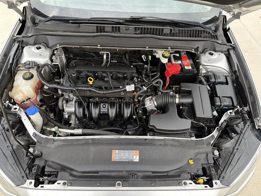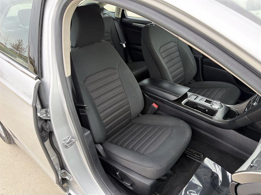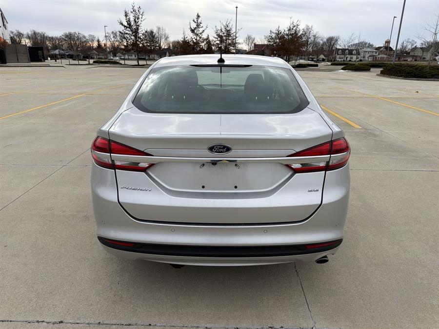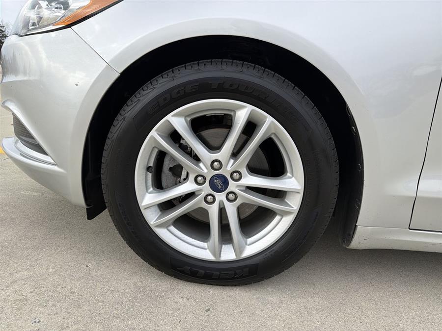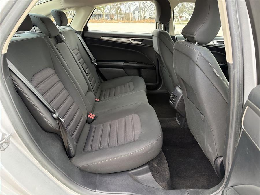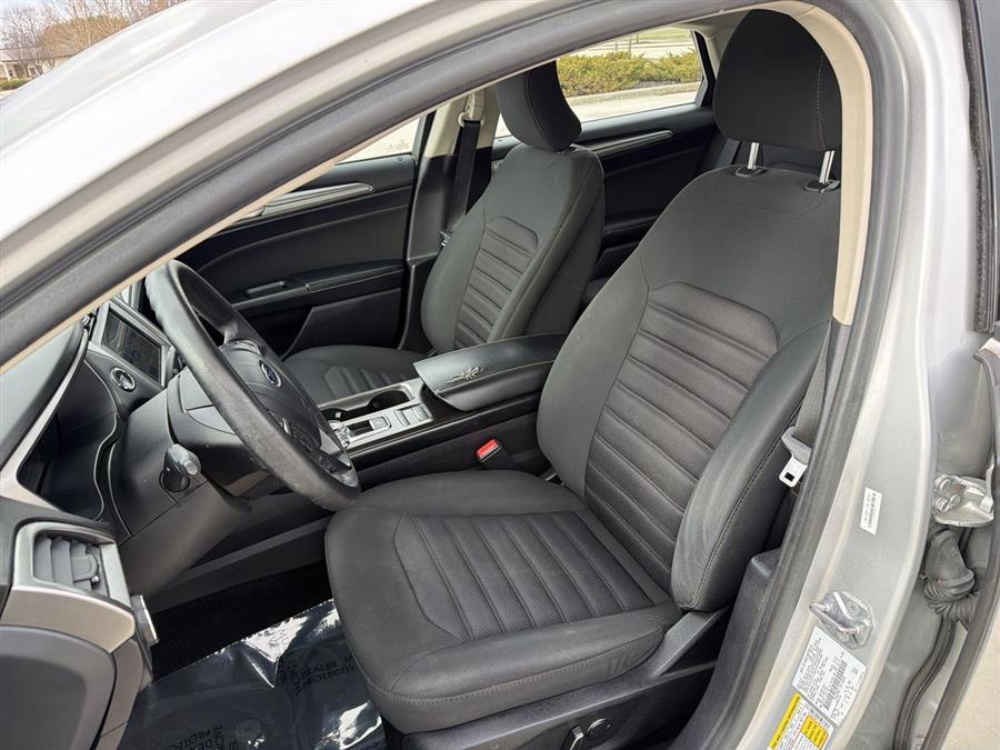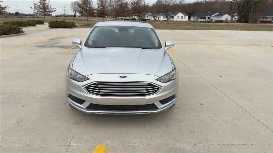 6-Speed Automatic, 4-Wheel Disc Brakes, 6 Speakers, ABS brakes, Air Conditioning, Alloy wheels, AM/FM radio: SiriusXM, Brake assist, Bumpers: body-color, CD player, Cloth Front Bucket Seats, Compass, Delay-off headlights, Driver door bin, Driver vanity mirror, Dual front impact airbags, Dual front side impact airbags, Dual-Zone Electronic Automatic Temperature Control, Electronic Stability Control, Emergency communication system: 911 Assist, Equipment Group 200A, Exterior Parking Camera Rear, Four wheel independent suspension, Front anti-roll bar, Front Bucket Seats, Front Center Armrest, Front License Plate Bracket, Front reading lights, Fully automatic headlights, Fusion SE Technology Package, Illuminated entry, Knee airbag, Low tire pressure warning, Occupant sensing airbag, Outside temperature display, Overhead airbag, Overhead console, Panic alarm, Passenger door bin, Passenger vanity mirror, Power door mirrors, Power driver seat, Power passenger seat, Power steering, Power windows, Radio data system, Radio: AM/FM Stereo/MP3/Single-CD, Rear anti-roll bar, Rear reading lights, Rear seat center armrest, Rear window defroster, Remote keyless entry, Security system, SiriusXM Radio, Speed control, Speed-sensing steering, Speed-Sensitive Wipers, Split folding rear seat, Steering wheel mounted audio controls, SYNC 3 Communications & Entertainment System, SYNC Communications & Entertainment System, Tachometer, Telescoping steering wheel, Tilt steering wheel, Traction control, Trip computer, Variably intermittent wipers, Wheels: 17" Sparkle Silver Painted Aluminum, 6-Speed Automatic.