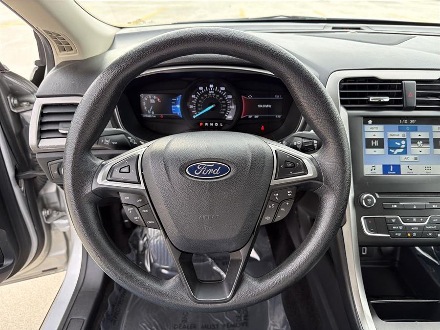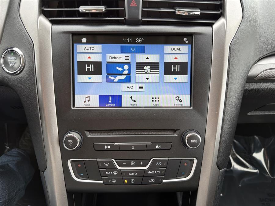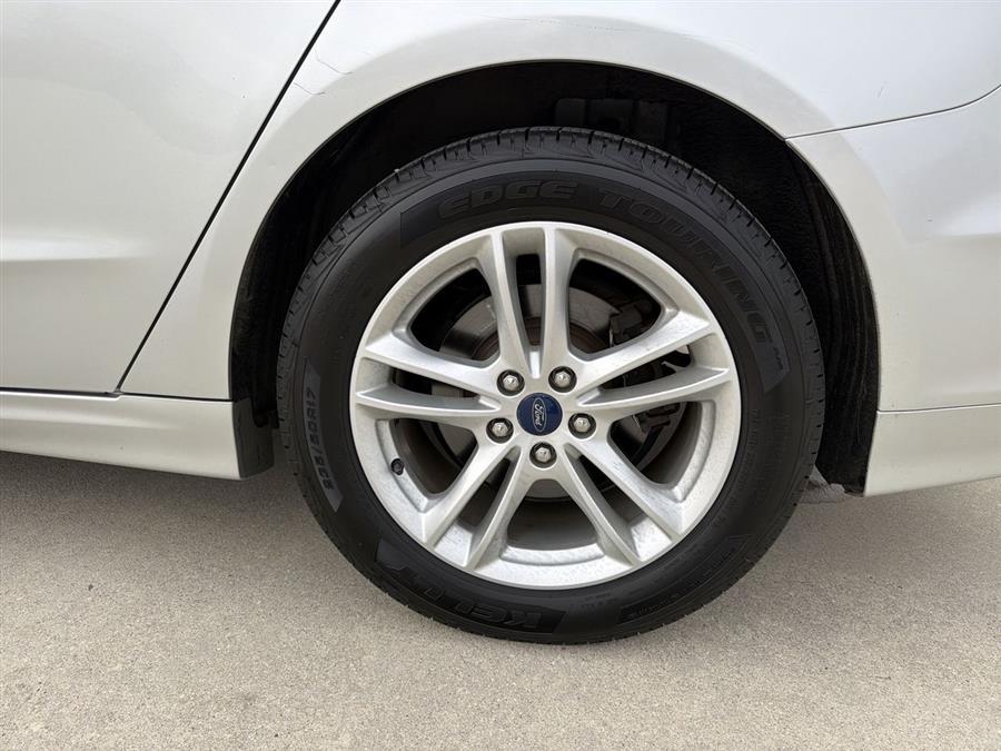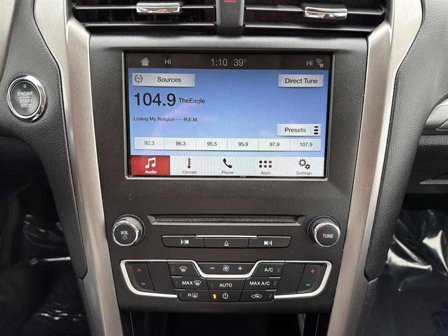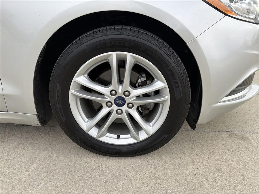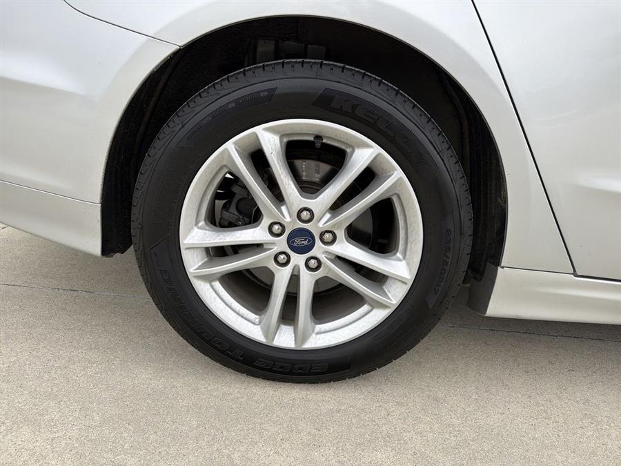 6-Speed Automatic, 4-Wheel Disc Brakes, 6 Speakers, ABS brakes, Air Conditioning, Alloy wheels, AM/FM radio: SiriusXM, Brake assist, Bumpers: body-color, CD player, Cloth Front Bucket Seats, Compass, Delay-off headlights, Driver door bin, Driver vanity mirror, Dual front impact airbags, Dual front side impact airbags, Dual-Zone Electronic Automatic Temperature Control, Electronic Stability Control, Emergency communication system: 911 Assist, Equipment Group 200A, Exterior Parking Camera Rear, Four wheel independent suspension, Front anti-roll bar, Front Bucket Seats, Front Center Armrest, Front License Plate Bracket, Front reading lights, Fully automatic headlights, Fusion SE Technology Package, Illuminated entry, Knee airbag, Low tire pressure warning, Occupant sensing airbag, Outside temperature display, Overhead airbag, Overhead console, Panic alarm, Passenger door bin, Passenger vanity mirror, Power door mirrors, Power driver seat, Power passenger seat, Power steering, Power windows, Radio data system, Radio: AM/FM Stereo/MP3/Single-CD, Rear anti-roll bar, Rear reading lights, Rear seat center armrest, Rear window defroster, Remote keyless entry, Security system, SiriusXM Radio, Speed control, Speed-sensing steering, Speed-Sensitive Wipers, Split folding rear seat, Steering wheel mounted audio controls, SYNC 3 Communications & Entertainment System, SYNC Communications & Entertainment System, Tachometer, Telescoping steering wheel, Tilt steering wheel, Traction control, Trip computer, Variably intermittent wipers, Wheels: 17" Sparkle Silver Painted Aluminum, 6-Speed Automatic.