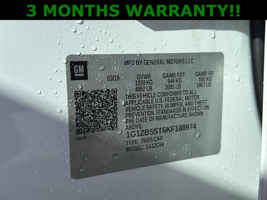 NEW BRAKES, Jet Black Cloth, 16" Aluminum Wheels, 4-Wheel Disc Brakes, 6 Speakers, 6-Speaker Audio System Feature, 6-Way Manual Driver Seat Adjuster, 6-Way Manual Front Passenger Seat Adjuster, ABS brakes, Air Conditioning, Alloy wheels, AM/FM radio, Apple CarPlay/Android Auto, Brake assist, Bumpers: body-color, Compass, Delay-off headlights, Driver door bin, Driver vanity mirror, Dual front impact airbags, Dual front side impact airbags, Electronic Stability Control, Emergency communication system: OnStar and Chevrolet connected services capable, Exterior Parking Camera Rear, Four wheel independent suspension, Front anti-roll bar, Front Bucket Seats, Front Center Armrest w/Storage, Front reading lights, Fully automatic headlights, Illuminated entry, Knee airbag, Low tire pressure warning, Occupant sensing airbag, Outside temperature display, Overhead airbag, Overhead console, Panic alarm, Passenger door bin, Passenger vanity mirror, Power door mirrors, Power steering, Power windows, Preferred Equipment Group 1LS, Premium Cloth Seat Trim, Radio: Chevrolet Infotainment 3 System, Rear anti-roll bar, Rear side impact airbag, Rear window defroster, Remote keyless entry, Security system, Speed control, Split folding rear seat, Steering wheel mounted audio controls, Tachometer, Telescoping steering wheel, Tilt steering wheel, Traction control, Trip computer, Variably intermittent wipers, 3 MONTHS WARRANTY!, Jet Black Cloth.