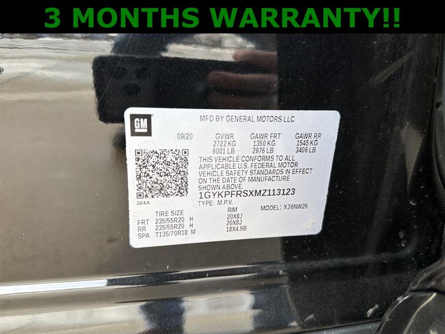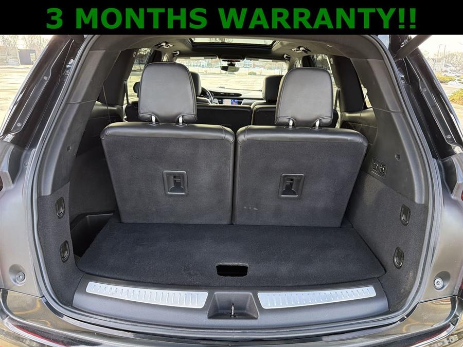 Sunroof/Moonroof, NEW TIRES, 2-Way Power Driver Lumbar Control Seat Adjuster, 2-Way Power Passenger Lumbar Control Seat Adjuster, 3.49 Axle Ratio, 3rd row seats: split-bench, 4-Wheel Disc Brakes, 8 Speakers, 8" Color Driver Information Center Display, ABS brakes, Adaptive Cruise Control, Air Conditioning, Air Ionizer, All-Weather Floor Mats, Alloy wheels, AM/FM radio: SiriusXM with 360L, Audio memory, Auto High-beam Headlights, Auto tilt-away steering wheel, Auto-dimming door mirrors, Auto-dimming Rear-View mirror, Automatic Emergency Braking, Automatic Parking Assist w/Braking, Automatic Seat Belt Tightening, Automatic Stop/Start w/Disable, Automatic temperature control, Bose Performance Series Audio System, Bose Premium 8-Speaker Audio System, Brake assist, Bumpers: body-color, Comfort & Air Quality Package, Compass, Delay-off headlights, Driver & Front Passenger Heated Seats, Driver Assist Package, Driver door bin, Driver vanity mirror, Dual Driver Info Center Display Gauge Cluster, Dual front impact airbags, Dual front side impact airbags, Electronic Stability Control, Emergency communication system: OnStar and Cadillac connected services capable, Enhanced Automatic Emergency Braking, Enhanced Visibility & Technology Package, Exterior Parking Camera Rear, Four wheel independent suspension, Front & Rear Park Assist, Front & Rear Premium Carpeted Floor Mats, Front anti-roll bar, Front Bucket Seats, Front Center Armrest, Front dual zone A/C, Front reading lights, Fully automatic headlights, Garage door transmitter, HD Surround Vision, Head-Up Display, Heated door mirrors, Heated front seats, Heated Rear Outboard Seating Positions, Heated steering wheel, Illuminated entry, Illuminating Door Handles, Inside Rear-View Auto-Dimming Mirror, Knee airbag, Lane Departure Warning System, Leather Seating Surfaces w/Mini-Perforated Inserts, Leather steering wheel, Low tire pressure warning, Memory seat, Occupant sensing airbag, Outside temperature display, Overhead airbag, Overhead console, Panic alarm, Passenger door bin, Passenger vanity mirror, Performance Suspension, Platinum Package, Power door mirrors, Power driver seat, Power Liftgate, Power moonroof: UltraView, Power passenger seat, Power steering, Power windows, Premium Headlamp System, Premium Luxury Package 1SD, Radio data system, Radio: Cadillac User Experience AM/FM Stereo, Radio: Cadillac User Experience w/Embedded Nav, Rain sensing wipers, Real-Time Damping Suspension Chassis, Rear air conditioning, Rear anti-roll bar, Rear Camera Mirror, Rear Camera Mirror Washer, Rear Pedestrian Alert, Rear reading lights, Rear seat center armrest, Rear window defroster, Rear window wiper, Remote keyless entry, Reverse Automatic Braking, Ride & Handling Suspension, Roof rack: rails only, Security Cargo Shade, Security system, Semi-Aniline Leather Seating Surfaces, SiriusXM w/360L, Speed control, Speed-sensing steering, Split folding rear seat, Spoiler, Steering wheel memory, Steering wheel mounted audio controls, Surround Vision Recorder, Tachometer, Teen Driver, Telescoping steering wheel, Tilt steering wheel, Traction control, Trip computer, Turn signal indicator mirrors, Variably intermittent wipers, Ventilated Driver & Front Passenger Seats, Voltmeter, Wheels: 20" 6-Split Spoke Alloy, Wireless Apple CarPlay/Wireless Android Auto.