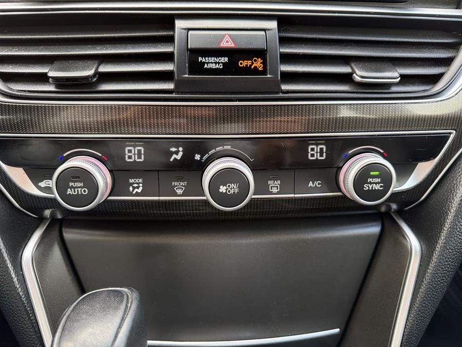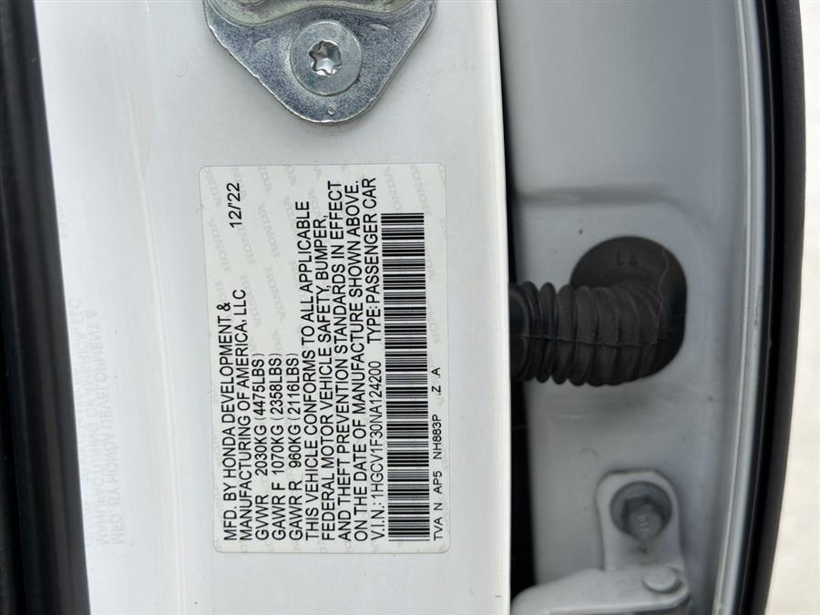 Apple Carplay/Android Auto, Black Artificial Leather, 4-Wheel Disc Brakes, 8 Speakers, ABS brakes, Adaptive Cruise Control: Adaptive Cruise Control (ACC) with Low-Speed Follow, Air Conditioning, Alloy wheels, AM/FM radio, Apple CarPlay/Android Auto, Auto High-beam Headlights, Automatic temperature control, Brake assist, Bumpers: body-color, Delay-off headlights, Driver door bin, Driver vanity mirror, Dual front impact airbags, Dual front side impact airbags, Electronic Stability Control, Emergency communication system: HondaLink, Exterior Parking Camera Rear, Fabric w/Synthetic Leather Seat Trim, Forward collision: Collision Mitigation Braking System (CMBS) + FCW mitigation, Four wheel independent suspension, Front anti-roll bar, Front Bucket Seats, Front Center Armrest, Front dual zone A/C, Front fog lights, Front reading lights, Fully automatic headlights, Illuminated entry, Knee airbag, Lane Departure Warning System, Leather Shift Knob, Leather steering wheel, Low tire pressure warning, Occupant sensing airbag, Outside temperature display, Overhead airbag, Overhead console, Panic alarm, Passenger door bin, Passenger vanity mirror, Power door mirrors, Power driver seat, Power steering, Power windows, Radio data system, Radio: 180-Watt AM/FM Audio System, Rear anti-roll bar, Rear seat center armrest, Rear window defroster, Remote keyless entry, Security system, Speed control, Speed-sensing steering, Speed-Sensitive Wipers, Split folding rear seat, Spoiler, Steering wheel mounted audio controls, Tachometer, Telescoping steering wheel, Tilt steering wheel, Traction control, Trip computer, Variably intermittent wipers, Wheels: 19" Machine-Finished Alloy w/Black Inserts, Black Artificial Leather.