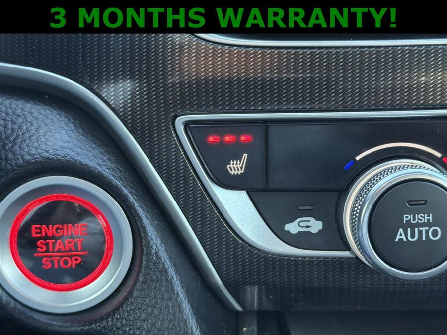 Black Artificial Leather, 4-Wheel Disc Brakes, 8 Speakers, ABS brakes, Adaptive Cruise Control: Adaptive Cruise Control (ACC) with Low-Speed Follow, Air Conditioning, Alloy wheels, AM/FM radio: SiriusXM, Apple CarPlay/Android Auto, Auto High-beam Headlights, Automatic temperature control, Blind Spot Information (BSI) System warning, Brake assist, Bumpers: body-color, Delay-off headlights, Driver door bin, Driver vanity mirror, Dual front impact airbags, Dual front side impact airbags, Electronic Stability Control, Emergency communication system: HondaLink, Exterior Parking Camera Rear, Fabric w/Synthetic Leather Seat Trim, Forward collision: Collision Mitigation Braking System (CMBS) + FCW mitigation, Four wheel independent suspension, Front anti-roll bar, Front Bucket Seats, Front Center Armrest, Front dual zone A/C, Front fog lights, Front reading lights, Fully automatic headlights, Heated door mirrors, Heated Front Bucket Seats, Heated front seats, Illuminated entry, Knee airbag, Lane Departure Warning System, Leather steering wheel, Low tire pressure warning, Occupant sensing airbag, Outside temperature display, Overhead airbag, Overhead console, Panic alarm, Passenger door bin, Passenger vanity mirror, Power door mirrors, Power driver seat, Power moonroof, Power steering, Power windows, Radio data system, Radio: 180-Watt AM/FM/HD/SiriusXM Audio System, Rear anti-roll bar, Rear seat center armrest, Rear window defroster, Remote keyless entry, Security system, Speed control, Speed-sensing steering, Speed-Sensitive Wipers, Split folding rear seat, Spoiler, Steering wheel mounted audio controls, Tachometer, Telescoping steering wheel, Tilt steering wheel, Traction control, Trip computer, Variably intermittent wipers, Wheels: 19" Machine-Finished Alloy w/Black Inserts, 3 MONTHS WARRANTY!, Black Artificial Leather.