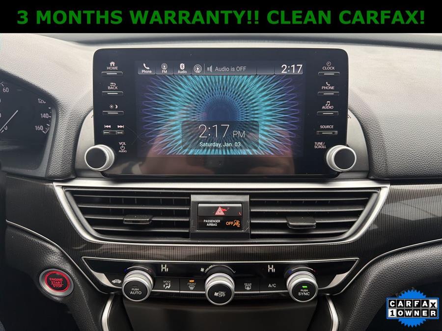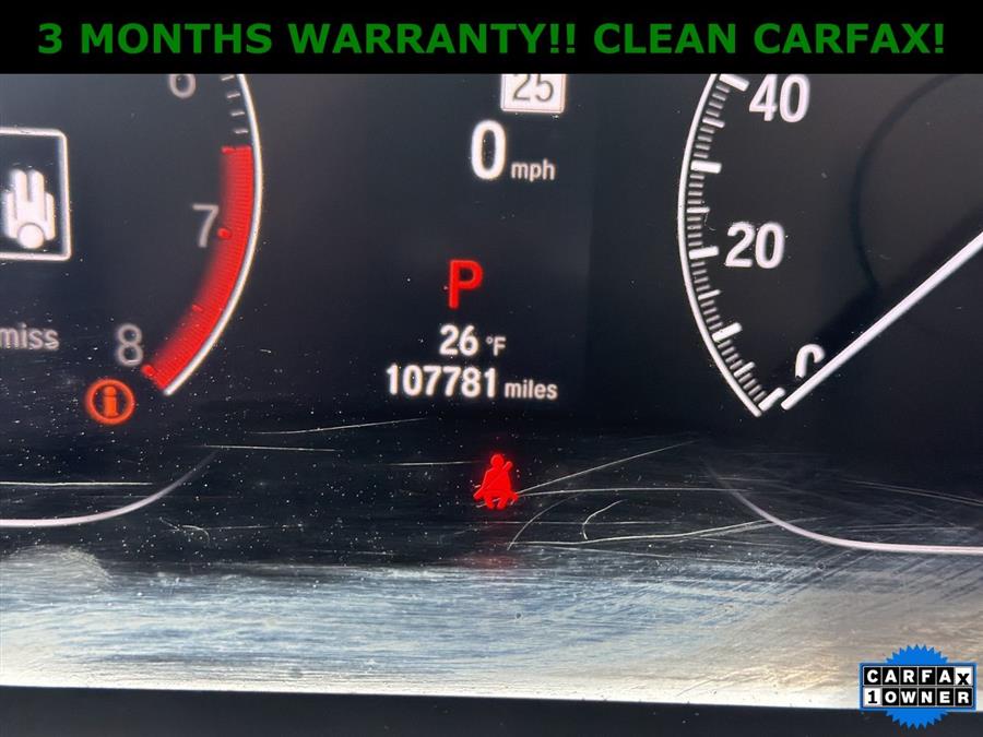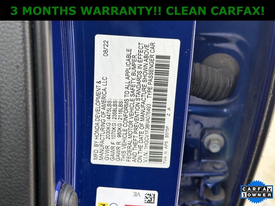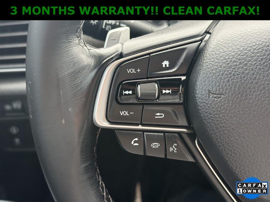 Apple Carplay/Android Auto, NON SMOKER, Black Artificial Leather, 4-Wheel Disc Brakes, 8 Speakers, ABS brakes, Adaptive Cruise Control: Adaptive Cruise Control (ACC) with Low-Speed Follow, Air Conditioning, Alloy wheels, AM/FM radio, Apple CarPlay/Android Auto, Auto High-beam Headlights, Automatic temperature control, Brake assist, Bumpers: body-color, Delay-off headlights, Driver door bin, Driver vanity mirror, Dual front impact airbags, Dual front side impact airbags, Electronic Stability Control, Emergency communication system: HondaLink, Exterior Parking Camera Rear, Fabric w/Synthetic Leather Seat Trim, Forward collision: Collision Mitigation Braking System (CMBS) + FCW mitigation, Four wheel independent suspension, Front anti-roll bar, Front Bucket Seats, Front Center Armrest, Front dual zone A/C, Front fog lights, Front reading lights, Fully automatic headlights, Illuminated entry, Knee airbag, Lane Departure Warning System, Leather Shift Knob, Leather steering wheel, Low tire pressure warning, Occupant sensing airbag, Outside temperature display, Overhead airbag, Overhead console, Panic alarm, Passenger door bin, Passenger vanity mirror, Power door mirrors, Power driver seat, Power steering, Power windows, Radio data system, Radio: 180-Watt AM/FM Audio System, Rear anti-roll bar, Rear seat center armrest, Rear window defroster, Remote keyless entry, Security system, Speed control, Speed-sensing steering, Speed-Sensitive Wipers, Split folding rear seat, Spoiler, Steering wheel mounted audio controls, Tachometer, Telescoping steering wheel, Tilt steering wheel, Traction control, Trip computer, Variably intermittent wipers, Wheels: 19" Machine-Finished Alloy w/Black Inserts, ONE OWNER!!, CLEAN CARFAX!, Black Artificial Leather.