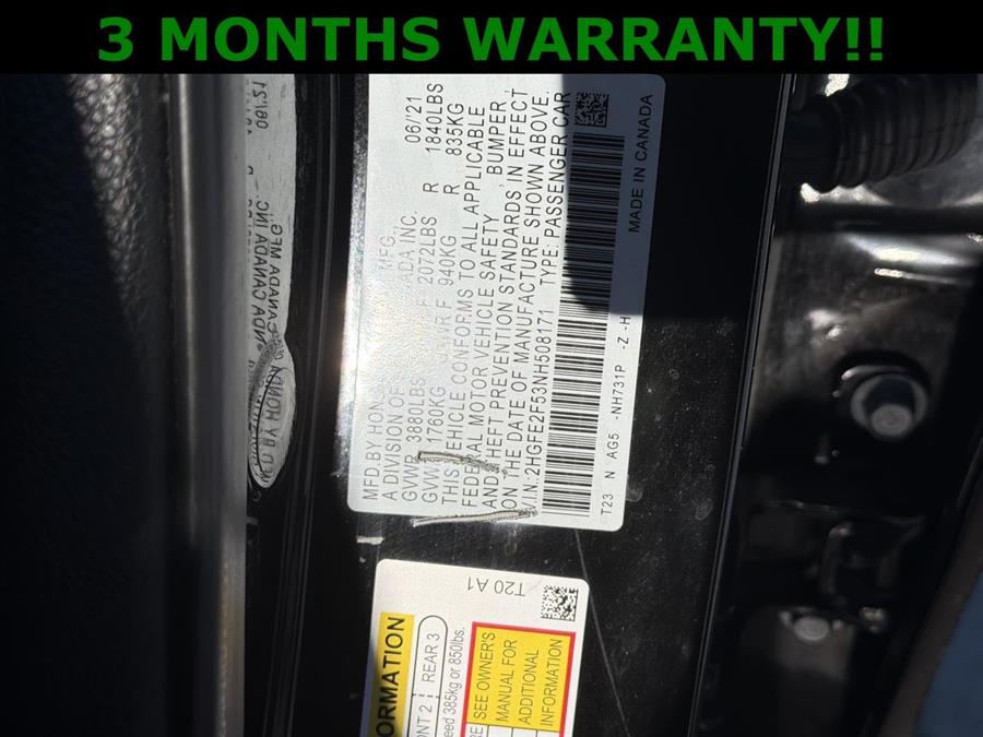 Backup Camera, NON SMOKER, NEW TIRES, Black Cloth, 4-Wheel Disc Brakes, 8 Speakers, ABS brakes, Adaptive Cruise Control: Adaptive Cruise Control (ACC) with Low-Speed Follow, Air Conditioning, Alloy wheels, AM/FM radio, Apple CarPlay/Android Auto, Auto High-beam Headlights, Automatic temperature control, Brake assist, Bumpers: body-color, Cloth Seat Trim, Delay-off headlights, Driver door bin, Driver vanity mirror, Dual front impact airbags, Dual front side impact airbags, Electronic Stability Control, Emergency communication system: HondaLink, Exterior Parking Camera Rear, Forward collision: Collision Mitigation Braking System (CMBS) + FCW mitigation, Four wheel independent suspension, Front anti-roll bar, Front Bucket Seats, Front Center Armrest, Front reading lights, Fully automatic headlights, Illuminated entry, Knee airbag, Leather Shift Knob, Leather steering wheel, Low tire pressure warning, Occupant sensing airbag, Outside temperature display, Overhead airbag, Panic alarm, Passenger door bin, Passenger vanity mirror, Power door mirrors, Power steering, Power windows, Radio data system, Radio: 180-Watt AM/FM Audio System, Rear anti-roll bar, Rear side impact airbag, Rear window defroster, Remote keyless entry, Security system, Speed control, Speed-sensing steering, Steering wheel mounted audio controls, Tachometer, Telescoping steering wheel, Tilt steering wheel, Traction control, Trip computer, Wheels: 18" Gloss Black Alloy, Black Cloth.