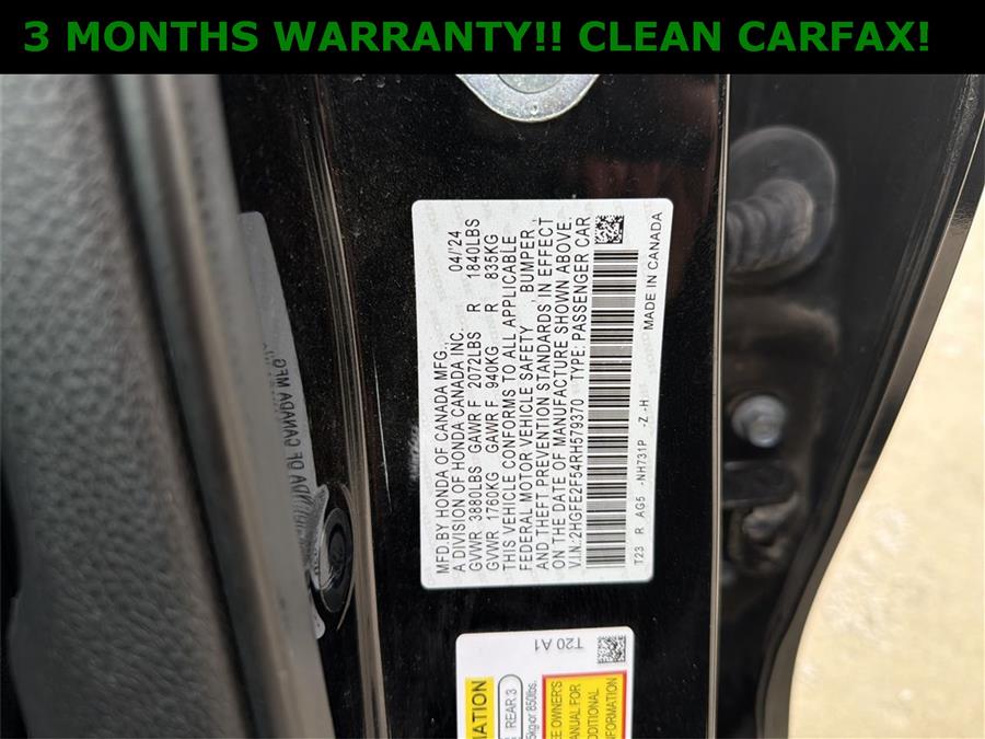 Apple Carplay/Android Auto, NON SMOKER, NEW TIRES, Black Artificial Leather, 4-Wheel Disc Brakes, 8 Speakers, ABS brakes, Adaptive Cruise Control: Adaptive Cruise Control (ACC) with Low-Speed Follow, Air Conditioning, Alloy wheels, AM/FM radio, Apple CarPlay/Android Auto, Auto High-beam Headlights, Automatic temperature control, Brake assist, Bumpers: body-color, Cloth/Leatherette Seating Surfaces, Delay-off headlights, Driver door bin, Driver vanity mirror, Dual front impact airbags, Dual front side impact airbags, Electronic Stability Control, Emergency communication system: HondaLink, Exterior Parking Camera Rear, Four wheel independent suspension, Front anti-roll bar, Front Bucket Seats, Front Center Armrest, Front reading lights, Fully automatic headlights, Illuminated entry, Knee airbag, Leather Shift Knob, Leather steering wheel, Low tire pressure warning, Occupant sensing airbag, Outside temperature display, Overhead airbag, Panic alarm, Passenger door bin, Passenger vanity mirror, Power door mirrors, Power steering, Power windows, Radio data system, Radio: 180-Watt Audio System, Rear anti-roll bar, Rear side impact airbag, Rear window defroster, Remote keyless entry, Security system, Speed control, Speed-sensing steering, Steering wheel mounted audio controls, Tachometer, Telescoping steering wheel, Tilt steering wheel, Traction control, Trip computer, Wheels: 18" Gloss Black Alloy, CLEAN CARFAX!!, Black Artificial Leather.
